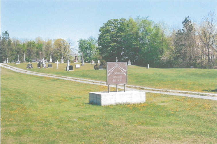 St. Catherine of Sienna R. C. Cemetery was established in this location in 1868, when the Roman Catholic Church moved from its old to its current location. Some of the first burials at the cemetery would have been reinterments from the old cemetery. There is a sign in the cemetery that claims it was established in 1828, though no known records indicate a cemetery in the township that early.